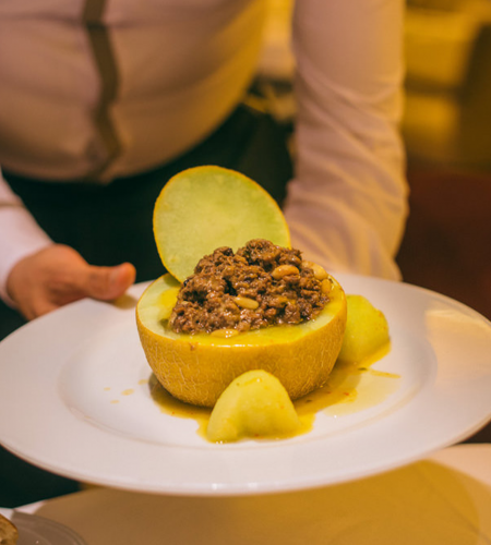 Read Moreمحشي الشمام ١٥٣٩م بطيخ أصغر محشوّ بمزيج الرز واللحم المفروم، مع الأعشاب واللوز والكشمش (الزبيب المجفف)، ويطبخ في الفرن بعدسة: @chevronseclairs